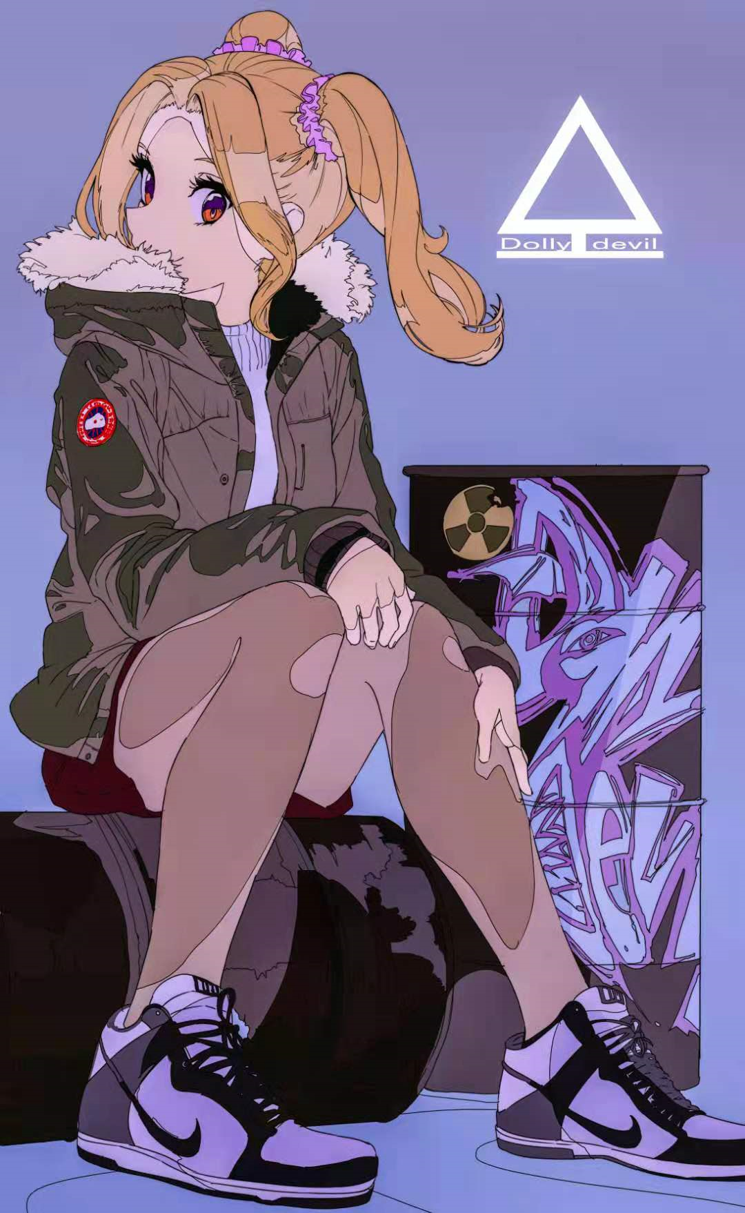 如果大家仔细观察,可以发现他画的很多女孩子如果是有穿鞋的情况下,很少出现女式鞋,而是基本画的酷酷的球鞋,甚至还可以看到nike的logo。(对nike是真爱了)