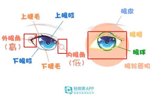 想要画好眼睛,就必须要了解眼睛的结构:眼球是一个球体,皮肤覆盖在球体之上,上眼皮和下眼皮包裹住眼球,睫毛分别附着在上下眼睑上,左右两端构成了内外眼角。这也就是我们的眼睛的一个基本结构了。