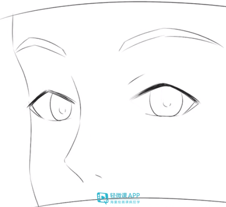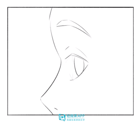 侧面的眼睛呈三角形,只能看见一只眼睛的一半,外眼角与上下眼睑的结构,同时要画出眼球球体的弧度,然后整个眼睛的宽度会变窄。