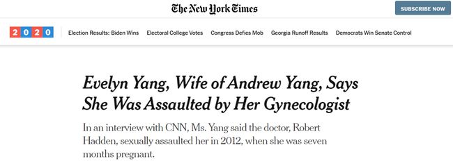 2020年,美国妇产医生哈登被起诉涉嫌性侵多位女性,其中还包括很多名流,比如美国华裔总统候选人杨安泽的妻子杨伊芙。