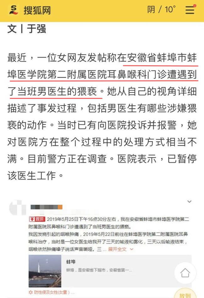 在国内,类似的事件也时有发生,2019年,微博网友网上爆料,自己在耳鼻喉科接受检查时遭到猥亵。