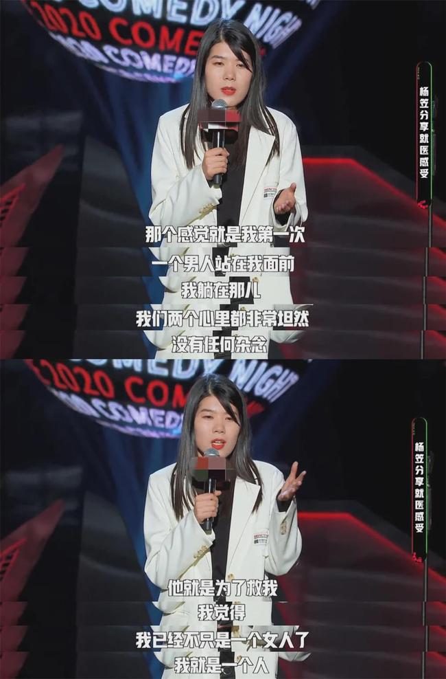去年,杨笠去医院做了摘除子宫内膜息肉的手术,执行手术的是一个男医生,整个过程给她的感觉非常专业,毫无尴尬或不愉快。“那一刻,是我今年感受最好的一刻。”