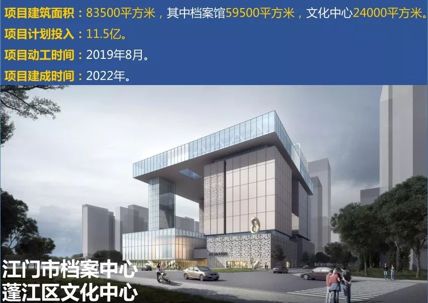 项目位于滨江新区启动区华盛路与龙腾路交叉口东侧,总投资约9.5亿,拟建设一座19层高的文化综合体建筑,内含档案馆、文化馆、剧院、图书馆、美术馆、博物馆及档案库房等功能性用房,根据节点规划,档案中心预计2022年建成。
