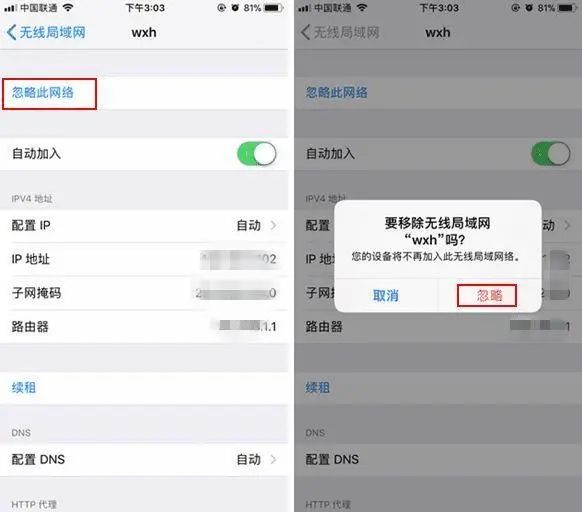 忘记网络/忽略此网络