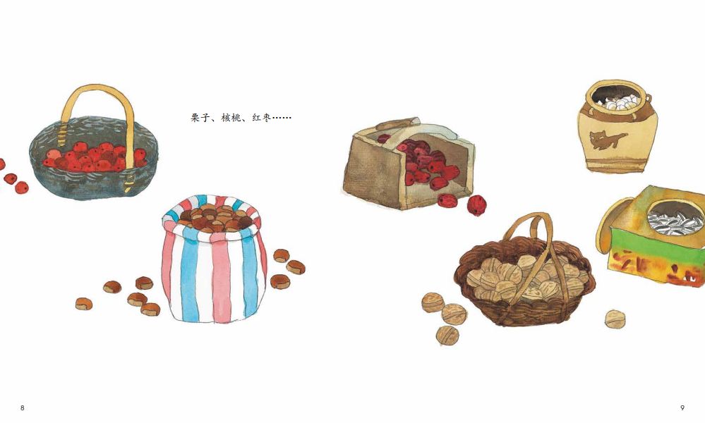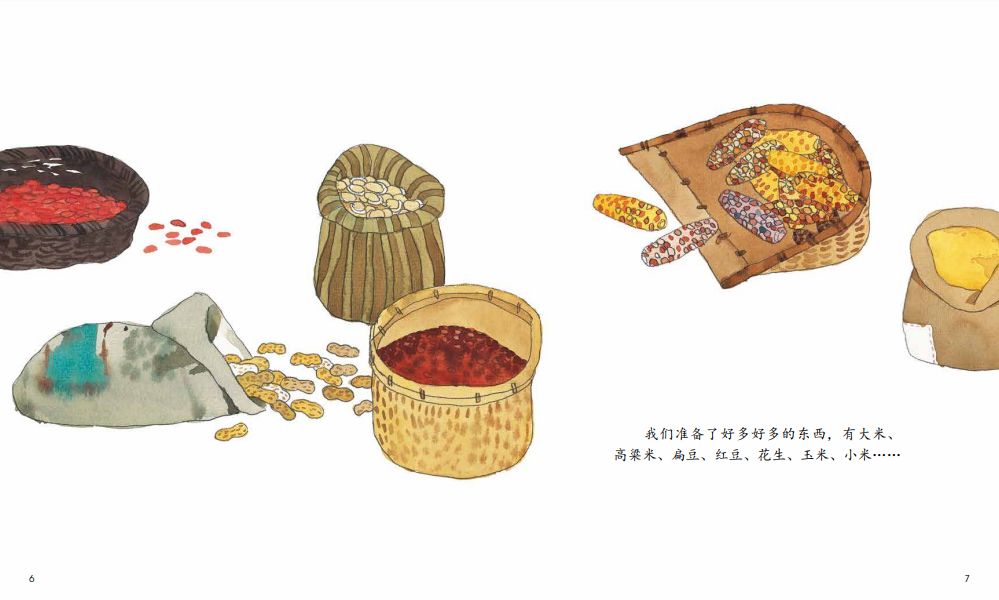 这个关于腊八粥的故事并不复杂。书中讲述了小女孩嫣儿一家在腊八节期间准备材料、熬粥、祭拜祖先、为远方的亲人留粥等事件。读完故事,孩子们能透过文字和图画对腊八节及当天的习俗有更详细和全面的认识。