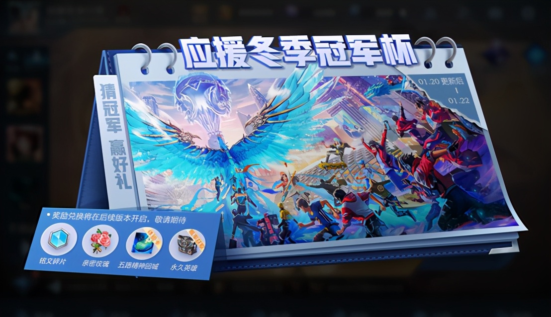 和两个月前的秋季赛一样,在总决赛的前三天每天登陆累计可以领取:1个冠军应援音符、3个总决赛FMVP应援信物。支持自己认为能最终获胜的队伍、FMVP;最终猜中的话可以获得丰厚奖励(钻石、铭文碎片、亲密度鲜花)。