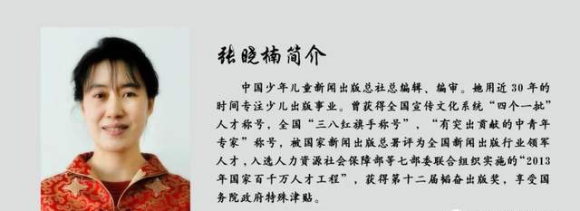 张晓楠同志是中国少年儿童新闻出版总社总编辑、编审,中国期刊协会副会长。她用近30年的时间专注少儿出版事业。曾获得全国宣传文化系统“四个一批”人才称号,全国“三八红旗手称号”,“有突出贡献的中青年专家”称号,被国家新闻出版总署评为全国新闻出版行业领军人才,入选人力资源社会保障部等七部委联合组织实施的“2013年国家百千万人才工程”,获得第十二届韬奋出版奖,享受国务院政府特殊津贴。下面请张晓楠同志就“为少年儿童提供优秀精神食粮——中少期刊方阵的探索与实践”的话题开讲。