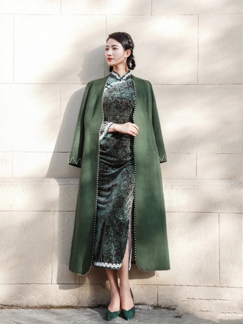 冬天到了,实际上仍然可以穿旗袍,纯净的色彩优雅干净,让人感觉良好。外部可以搭配中式礼服,以使整体风格更加一致。旗袍和高跟鞋是最佳搭配,生动活泼地散发着女人的独特魅力,迷人而自豪。