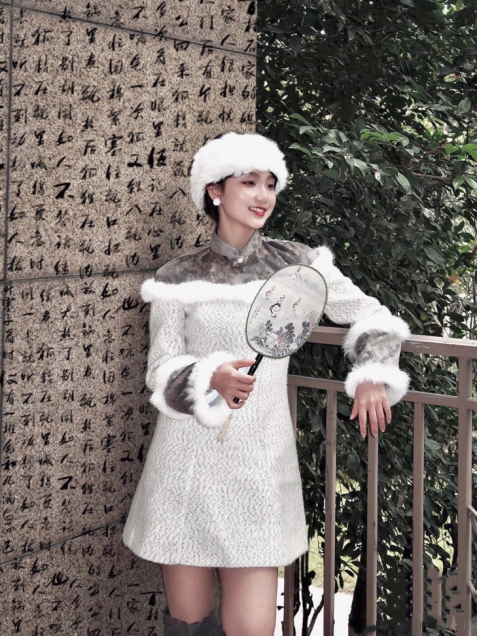 长袖旗袍非常适合本季,恰到好处,根本没有轻浮的感觉。旗袍上的毛绒拼接元素非常俏皮,适合年轻女孩。样式更加独特,因此不必担心样式。旗袍最重要的是剪裁,大一分显得太松,小一分显得太紧,必须适合您的身体线条才能看起来很好。