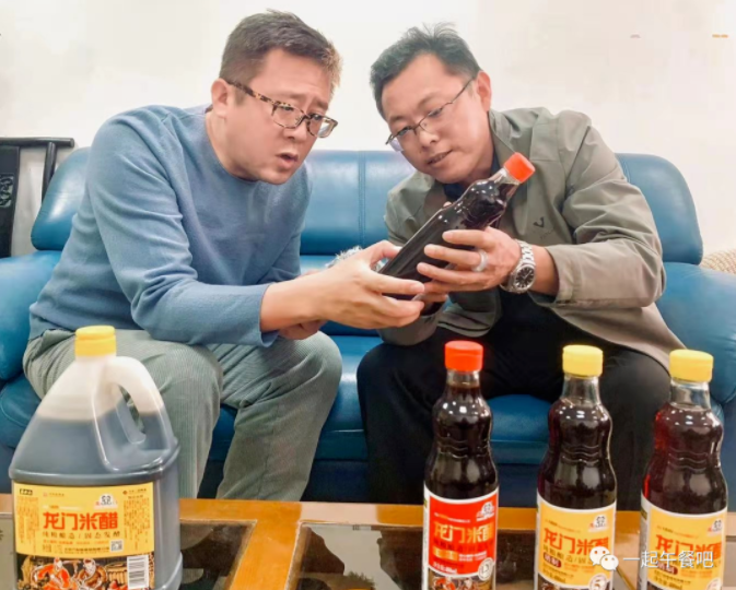 (北京六必居食品有限公司总工程师、龙门米醋制作技艺第五代传承人代表车有荣为主持人讲解龙门米醋里的“讲究”)