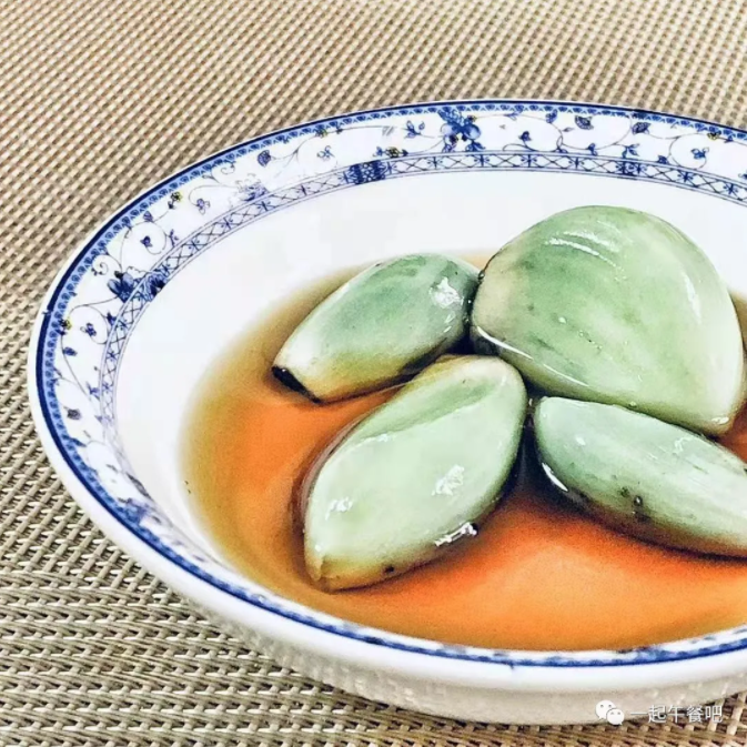 今天腊八,中国人的生活中尤其是在一些特别的节令时总会准备一些有标志性的吃食。到了腊八,今天怎么也得喝上一碗香甜滋润的腊八粥!不过今天除了喝粥之外,还有件事情是不能忘的,这就是今天一定要泡上一坛湛清碧绿的“腊八蒜”,虽然那街市上的一切都被冷嗖嗖的寒风包裹着,但饭桌上那馥郁着酸、辣、甜、香的“腊八蒜”会为这萧瑟的季节增添了一份生气,还有就是当翠绿的“腊八蒜”可以享用的时候,这年也就到了!