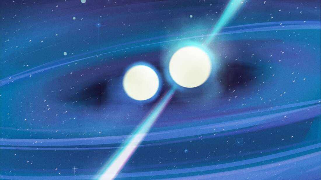 一个国际天文学家团队在2020年7月8日在《自然》杂志上发表了一项关于双星系统的突破性发现。一颗名为PSR J1913+1102的中子星(即脉冲星)在高速旋转中与另一颗密度极大的恒星残骸同在一段狭窄的轨道上运行,预计将在4.7亿年内相撞——在宇宙的时间尺度上看,这时间并不漫长。一旦相撞,它们将会以引力波和光的形式释放出巨大的能量。