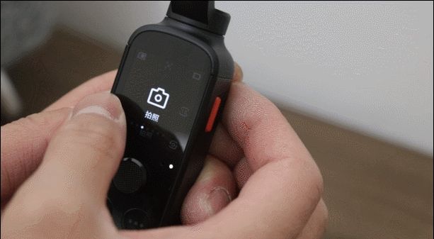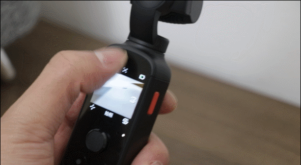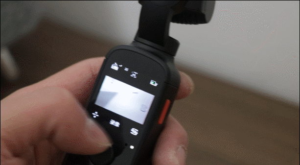 为了让日常拍摄更方便,在显示屏的右下角,还拥有一个前后镜头切换的快捷键,设备拍摄时,使用大拇指就能够轻松够到。这也使得我们在拍摄和自拍时选择会更方便,这也是vlog拍摄过程中,最常用到的基础运镜方式之一吧!