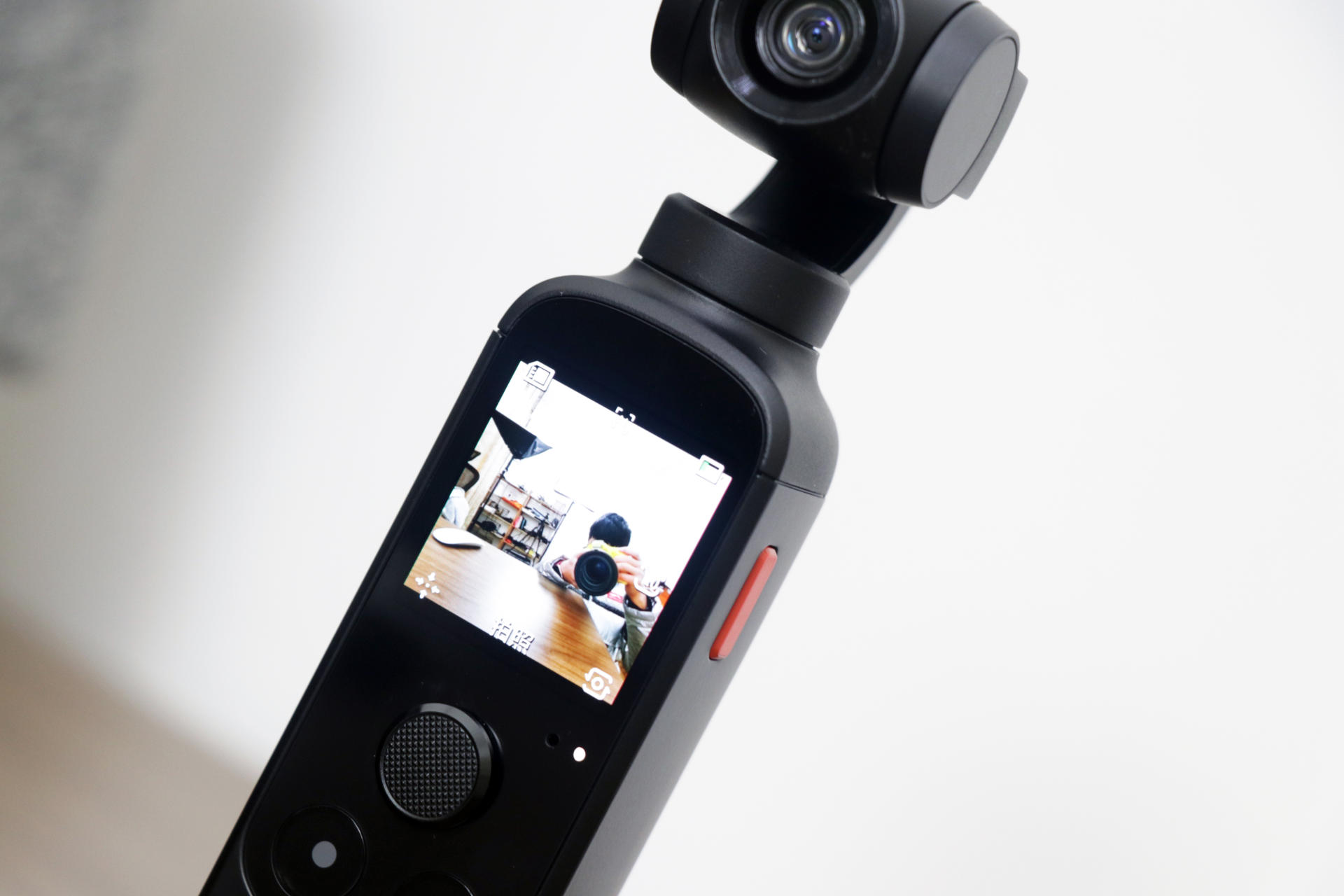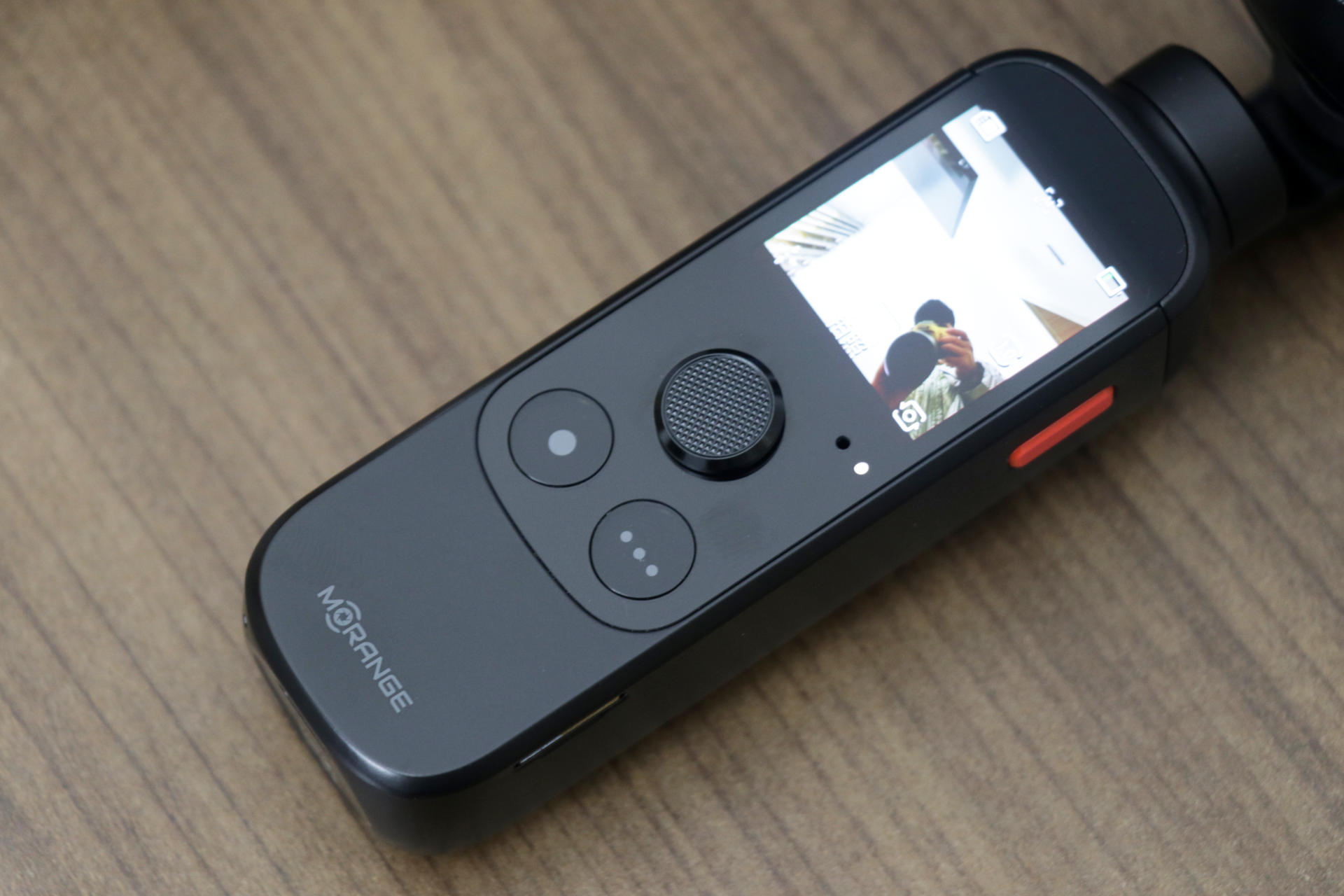 橙影的机身正面,拥有一块1.4英寸AMOLED触控显示屏,除了能够进行模式调节,以及其他相关设置外。日常拍摄的时候,我们还可以通过这款小屏幕,大致看到拍摄时的画面构图。从此,不需要让我们在画质和构图中做任何选择,为vlog而生的它,通通都会给我们。