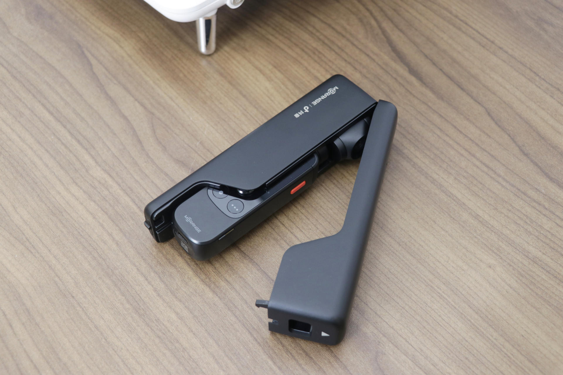 而在其他细节设计方面,橙影也颇为用心。为了能够更好的连接安卓和苹果手机,在其机身左侧,拥有一个扩展接口,配合标配的两枚连接头,不管你用的是iPhone,还是安卓手机,都能够与橙影实时连接,实现更多功能。