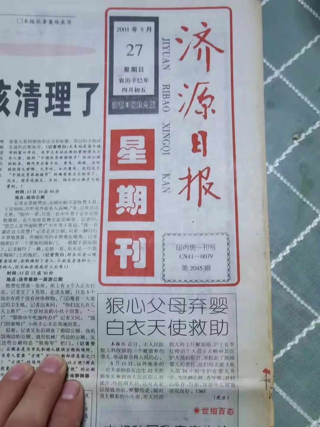 然而幸运的毛旦转危为安。根据2001年《济源日报》一篇不足200字的报道,这年5月,刘义功夫妇“以没钱为由,弃婴而走”;之后,市人民医院儿科派员轮番照护,“新生儿健康状况良好”。