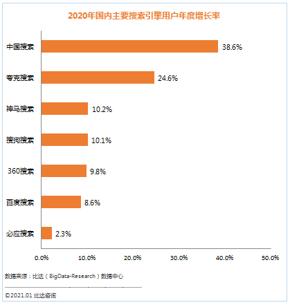 2020年中国搜索用户增速行业领跑