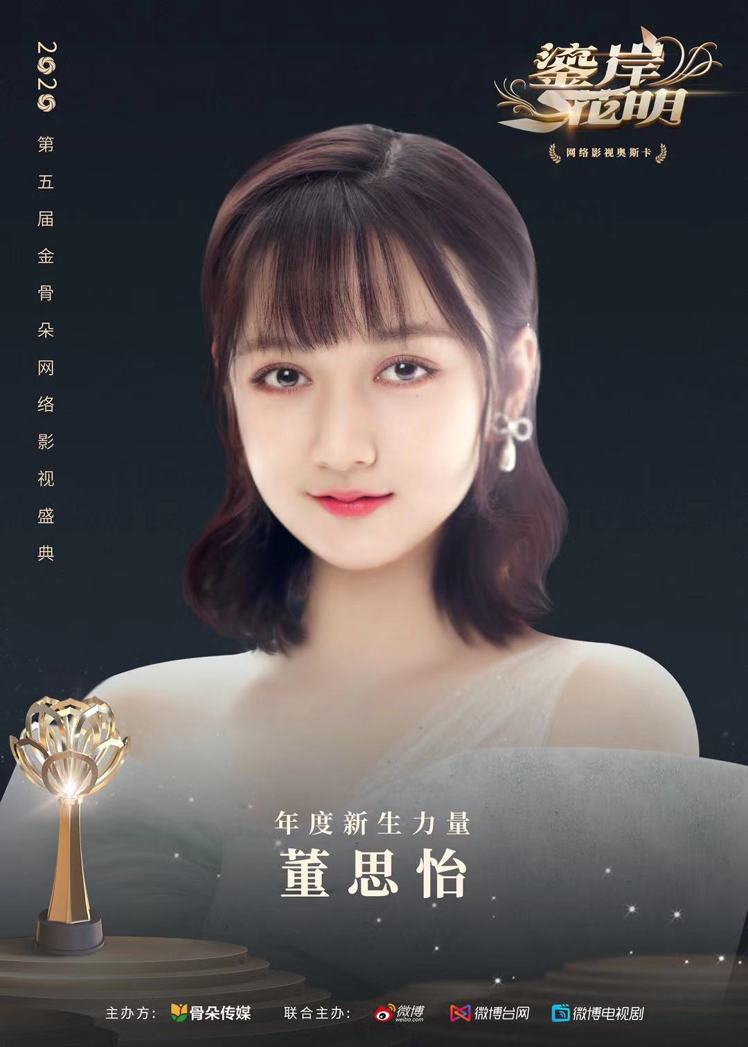 昨晚,第五届金骨朵网络影视盛典线上盛典在新浪微博直播和一直播发布,演员董思怡凭借《二十不惑》段家宝一角荣获“年度新生力量”这一奖项,这不仅是对她过去一年来努力的肯定,也是对未来一年董思怡待播作品的期待和认同。相信随着董思怡更多作品的播出,我们将会看到她身上更多无限的可能。