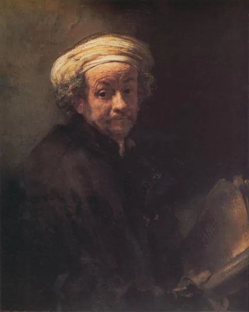 ▲伦勃朗《戴颈甲和贝雷帽的自画像》