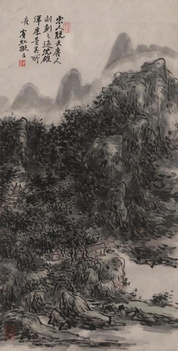 六十岁以后,黄宾虹从新安画派的疏淡清逸,转向学习吴镇的黑密厚重的积墨风格。以此为转机,黄宾虹开始由“白宾虹”逐渐向“黑宾虹”过渡。1928年黄宾虹首游桂、粤,画了大量写生作品。