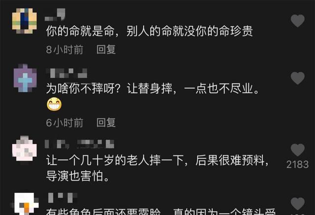 这段视频一经发布,便引发不少网友的争议。有网友怒斥杜旭东不敬业,不把替身演员的命当命。也有网友表示理解,毕竟杜旭东年纪太大,专业事情还是需要专业的人去做。