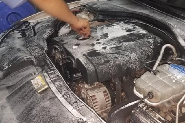 冲洗发动机最好去专业的洗车店,正规的汽车美容店都有专业的发动机舱清洗流程,并且会配合相应的产品一起清洗。比如:专业清洗发动机舱的去污产品、毛刷、以及蒸汽喷枪等等。
