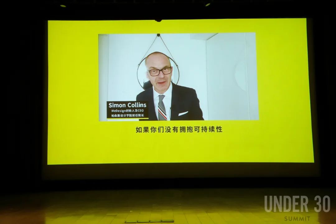 帕森斯设计学院前任院长、全球设计顾问Simon Collins也通过视频与大家分享了三点建议。他认为,无论从事什么行业,都要拥抱可持续性、包容性,并诉诸正确的科技。