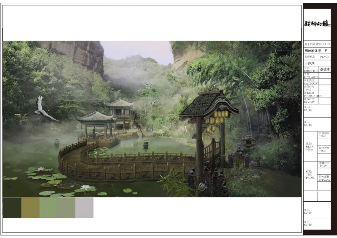 《麒麟幻镇》对影片效果极致追求,拍摄时长25天,为还原周坤的住处,剧组还在景区搭建了栈桥与湖心亭实景,在有限的预算内尽心尽力。