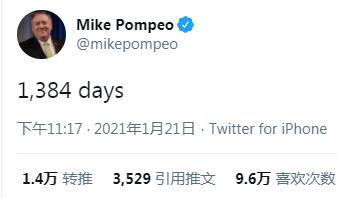 隔天,在拜登新政府第一个完整工作日,他又发推,一个数字,1384。