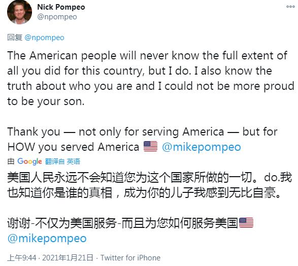 而且他的儿子尼克•蓬佩奥也在网上不断吹嘘他老爸的那些所谓“功绩”。