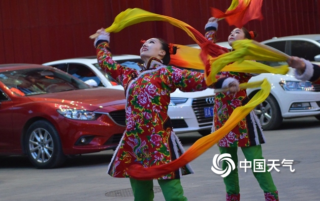 辽宁沈阳,身穿花棉袄的舞蹈演员们正在表演。(小沈阳/视觉中国)