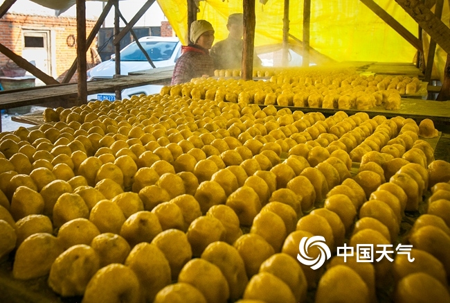 黑龙江佳木斯靠山屯,刚出锅的粘豆包。(肖殿昌/视觉中国)