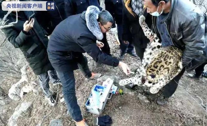1月14日天刚亮,营救工作立即开展,在当地村民的协助下,警方通过搭建绳索、开辟营救通道,民警和救治专家克服各种困难到达半山腰,对金钱豹进行麻醉解困和现场简易伤口处理后,成功将受伤的金钱豹救出。经野生动物专家初步鉴定,受伤的大型动物为国家一级保护动物——金钱豹,雌性,年龄约三四岁,右前肢受伤,目前已送往山西省野生动物救护中心进行抢救治疗。