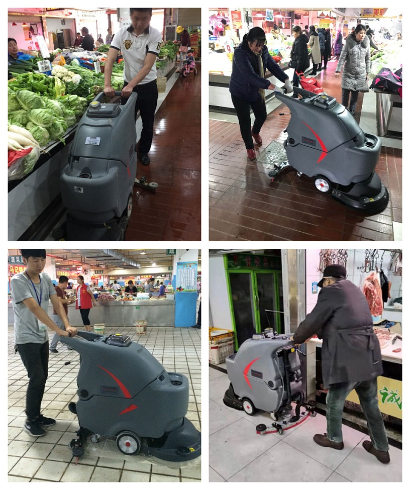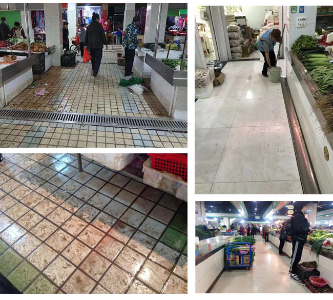 农贸市场使用洗地机能一定程度解决市场地面湿漉漉污水横流的问题,阴雨天气加强保洁清洁频率,能给菜市场带来干净整洁的环境。