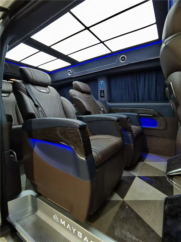 整车内饰呢也是Napa真皮全车包覆的顶棚座椅包括车门的内测都是包覆上通风口采用的迈巴赫新款涡轮出风口C柱柱灯顶棚是宫格顶灯后排座椅可以成2-3座 奔驰7座商务车价格商务舱,为了追求优质的乘坐体验,座椅设计得宽大厚软,具备多向调节通风加热旋转按摩电动等功能。独特的菱形设计,让空间休闲感直线上升。增加奔驰威霆独一无二的奢华。