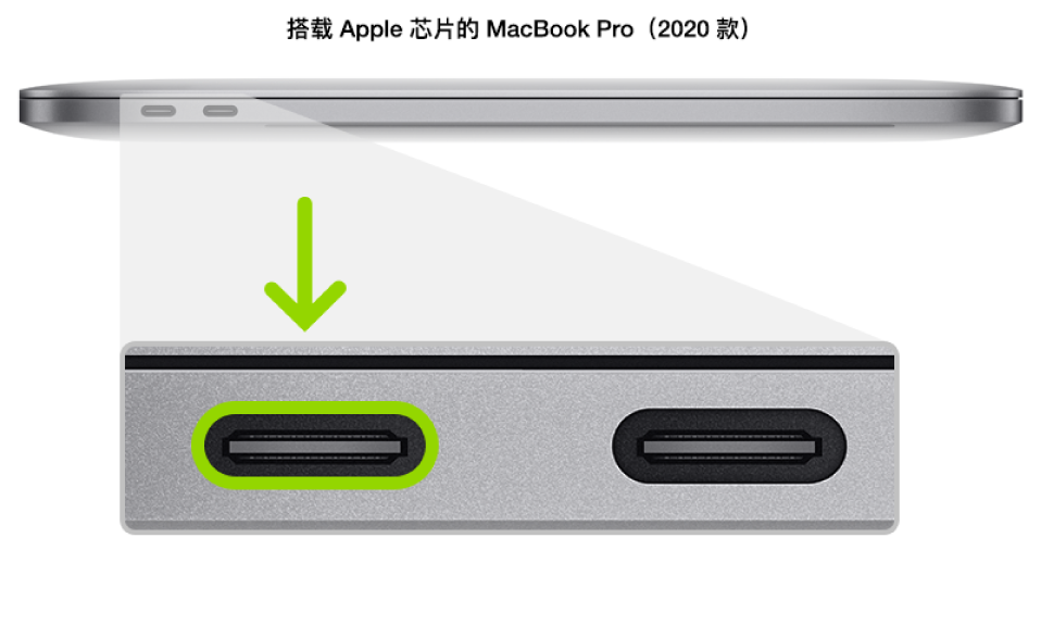 在任意支持的 Mac 上安装 Apple Configurator (系统要求 macOS 10.15.6 或更高版本),并通过线缆连接 M1 芯片版 Mac,后者需要插入下图中示例的指定接口: