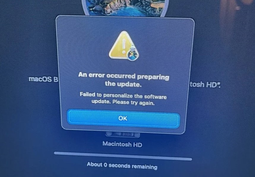 在搜索过程中,我还发现有 M1 设备用户遇到了在联网安装 macOS Big Sur 的过程中出现「在准备更新时发生错误」的提示,连安装过程都无法完成;问题出现的原因同样是用户在联网重装 macOS Big Sur 之前进行了抹掉磁盘的操作。
