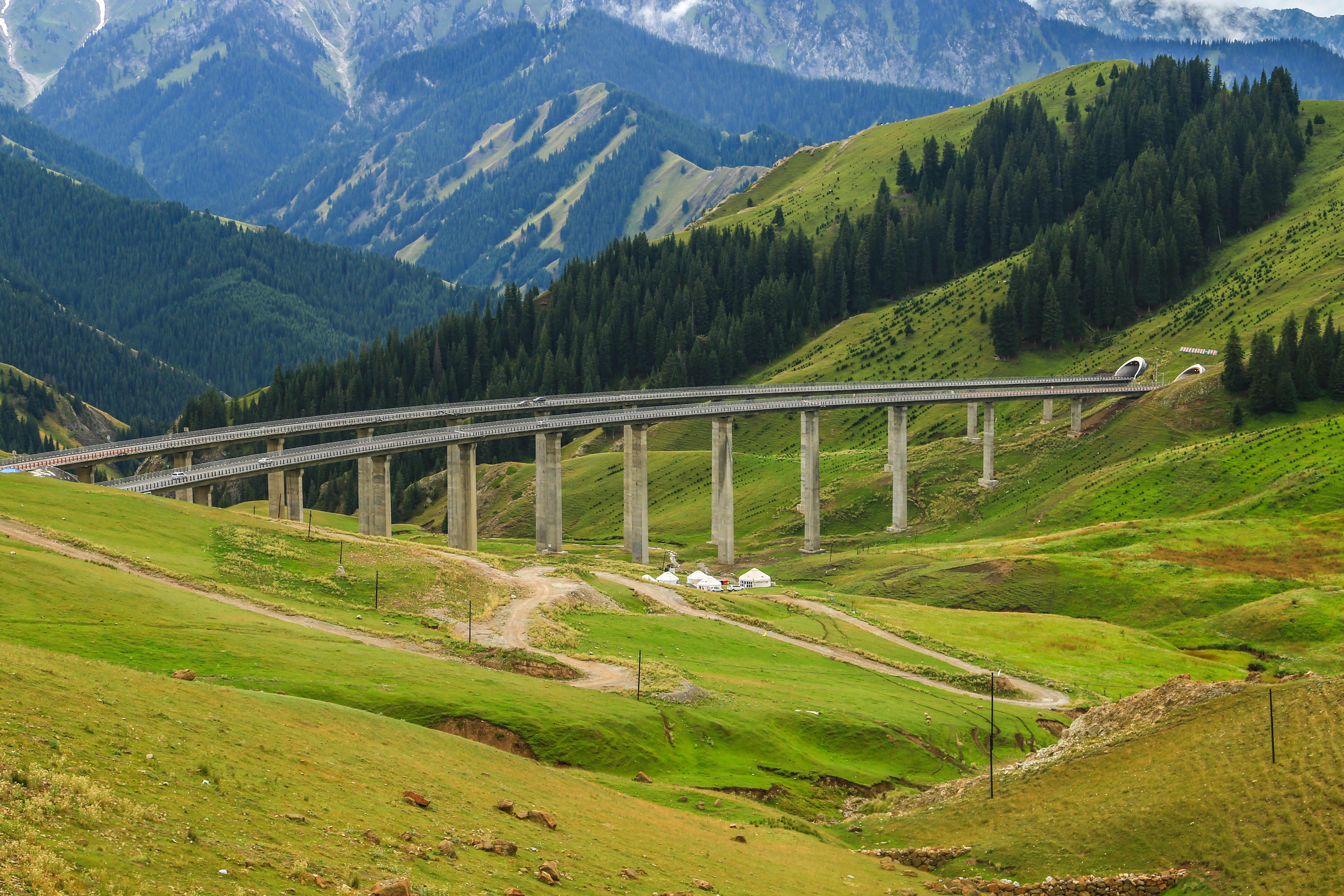 果子沟天险的凿通,打开了中原通向伊犁河流域的道路,为古丝路新北道找到了一条捷径,自此这里车马喧嚣,成为了重要的“铁关”。时间到了21世纪初,国家综合考虑之下批复了赛里木湖—果子沟口高速公路的项目环境影响报告书,将果子沟大桥的建设提上了日程。2006年在果子沟上搭建大桥项目动工,2011年通车运营。