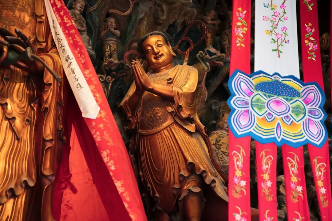 观世音菩萨左手边的小童子则是“五十三参的主人公”善财童子。