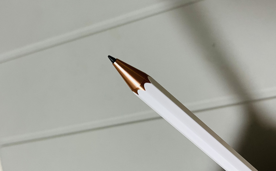 说实话,笔者也是第一次入手这家的产品,在还没上手之前内心还是有那么一点点的忐忑。不过在上手之后笔者那颗忐忑的心也是放了下来,能看到在外观方面,不论是整体的长度,或是及外观,都和日常生活中的铅笔十分相像,要是不仔细观看可能都会以为这就是一只铅笔。值得一提的是,在笔头处厂家还贴心地加入了铅笔锯齿设计,使其看起来更像是一只普通铅笔。