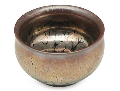 张灵说,建盏按尺寸一般分为三种:口径在15cm以上的为大型盏,如今主要用于陈列欣赏;口径在11至15cm之间的为中型盏,可用于分茶的母盏;口径在11cm以下的为小型盏,日常饮茶基本上用这种规格的建盏。微唇鼓腹的香炉盏以其沉稳典雅的造型深受人们喜爱,也因此使绵密规整的鹧鸪斑釉成为香炉盏的最佳“拍档”,鹧鸪斑香炉型建盏“美美相合”,成为盏行天下的经典之作!(石木金)