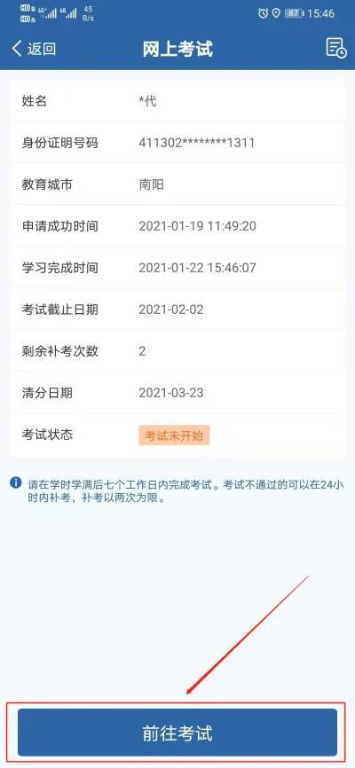 5、学习成功后点击【前往考试】,考试通过的用户,可点击【前往查看】查看网办进度记录;