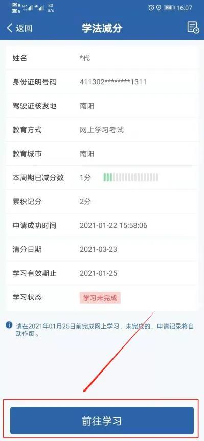 参加网上学习(3日内累计学满30分钟)且经考试合格的,一次减免1分。