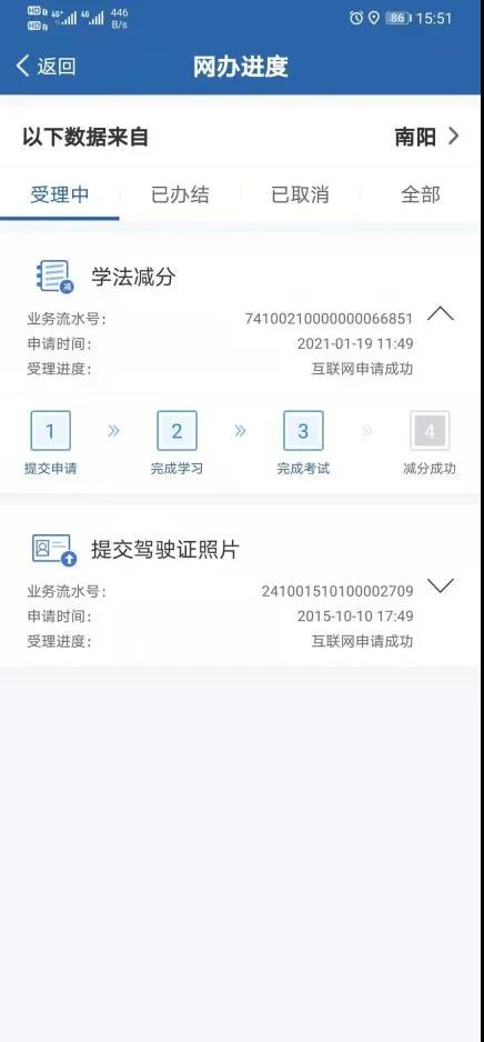 5、机动车驾驶人名下有未处理的交通违法行为记录的;