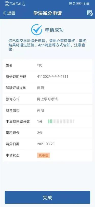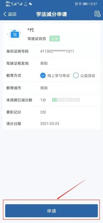 机动车驾驶证核发地及“交管12123”注册地均在南阳的机动车驾驶人,可以登录“交管12123”APP“学法减分”互联网学习考试平台,完成实名认证后,参加道路交通安全法律、法规和相关知识网上30分钟学习,并考试合格,可以减免1分,一个记分周期内累计最高可减免6分。不区分驾驶证准驾类型,也不区分是否为营运车辆。