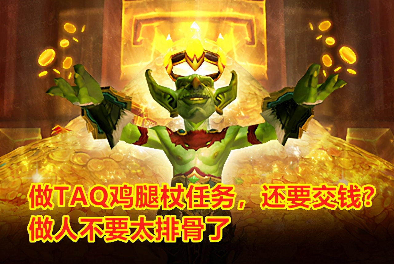 更何况,现在已经快接近NAXX的版本中期了,能做橙杖任务的玩家,其装备和属性数值对于TAQ副本来说,早就溢出了。他去打TAQ,其实也就是为了做一个任务而已,只要不破坏60%的分金线,他就是一个普通的工具人,凭什么还要他交钱,还不发工资?