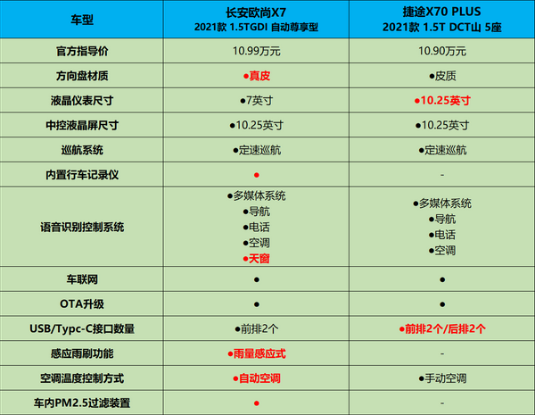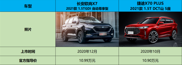 那么,对于消费者来说,同为10万元级国产SUV的佼佼者,长安欧尚X7和捷途X70 PLUS谁更值得选择呢?接下来,我们选取了官方指导价10.99万元的2021款长安欧尚X7 1.5TGDI 自动尊享型和10.90万元的2021款捷途X70 PLUS 1.5T DCT山 5座进行全面的对比分析,看看谁更靠谱。