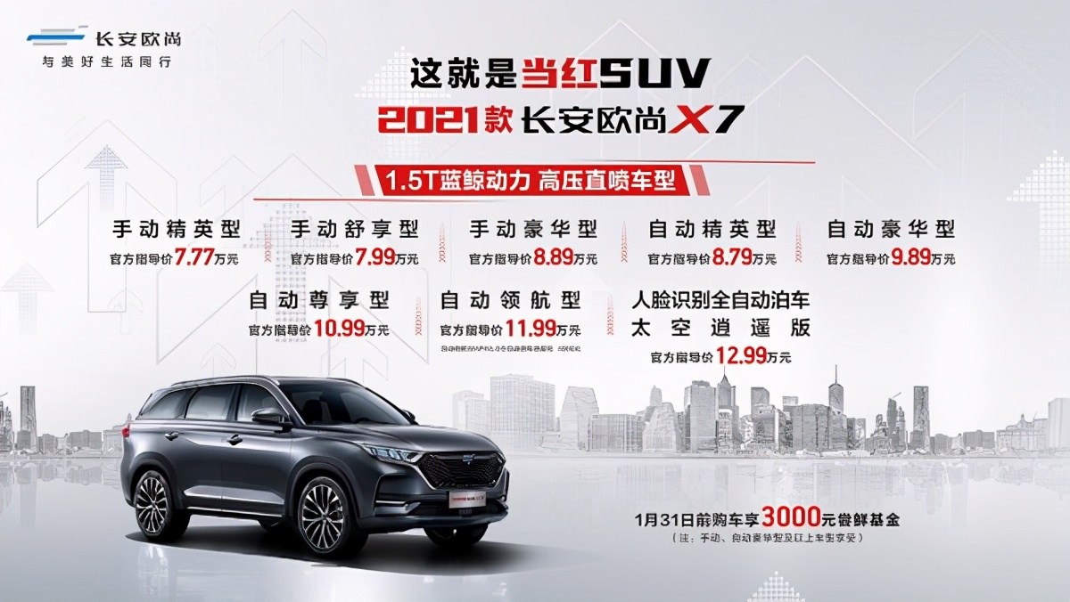 此外,2021款长安欧尚X7还享受5重好礼,1月31日前购买手动、自动豪华型及以上车型可享3000元尝鲜基金,以及0元换新车、至高8万元定额贷3年0利息、金融贴息至高12000元、置换补贴至高5000元等多重福利,现在购车显然更划算。