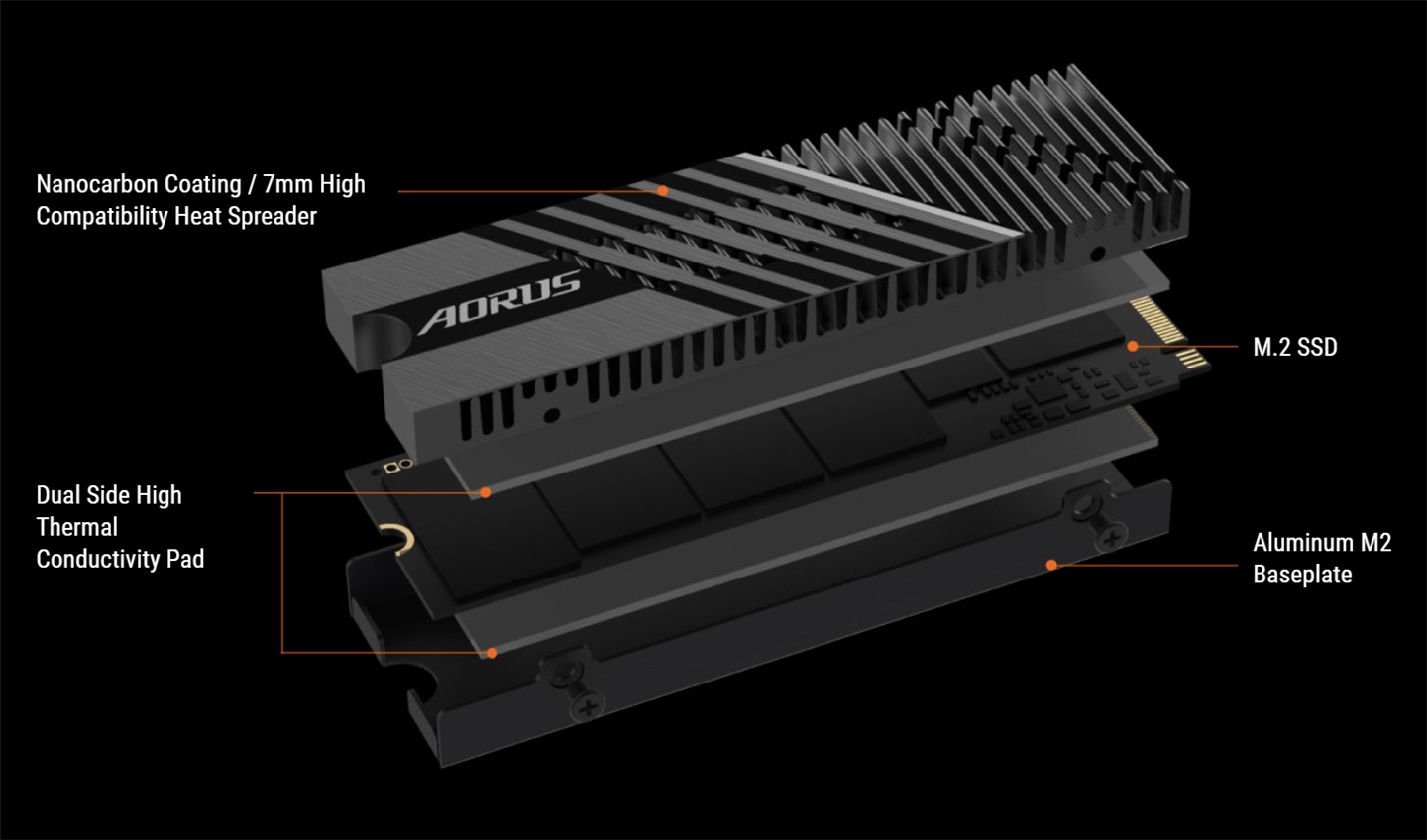 IT之家了解到,这款产品采用的群联 PS5018-E18 主控芯片采用 12nm 制程制造,发热减小,但仍需要散热措施。技嘉此款硬盘搭载正反面可拆卸铝散热片,高度 7mm,鳍片密度高,且采用立体镂空设计,十分美观。散热片与 SSD 正反面均配备导热垫,采用螺丝固定,可拆卸。