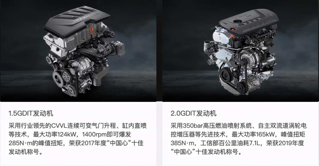 第二代哈弗H6提供1.5T/1.5GDIT/2.0GDIT多种动力选择,相比长安CS75 PLUS目前的1.5T/2.0T更加全面,而且,还有CVVL连续可变气门升程、电控涡轮增压、缸盖集成排气歧管、350bar高压燃油喷射系统、自主双流道涡轮电控增压器等先进技术加持,进一步拉开了其与一众竞品车型的差距。